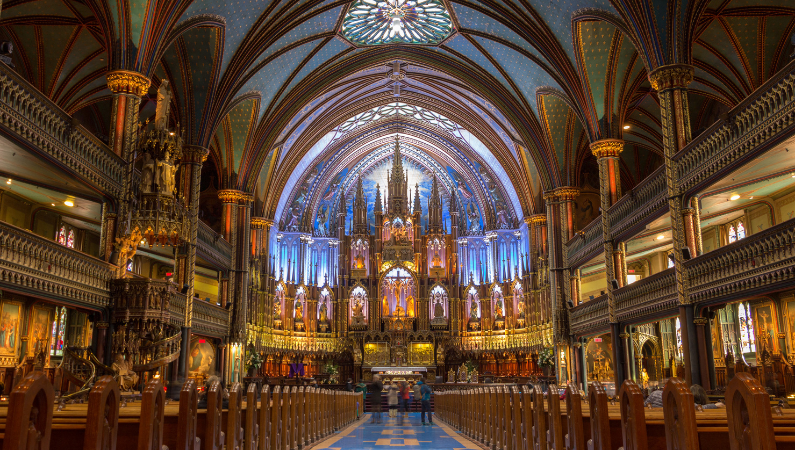 モントリオール・ノートルダム大聖堂は、北米最大級のカトリック教会として知られ、訪れる人々を圧倒する壮麗な建築が特徴です。