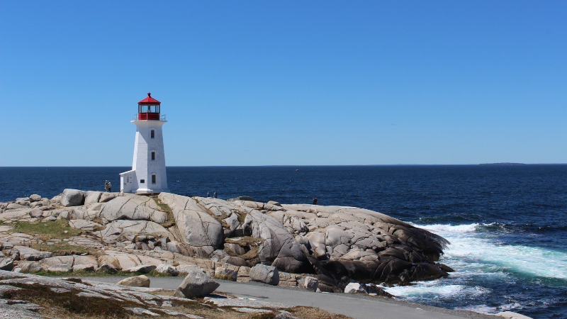 ペギーズ・コーブは、ノバスコシア州を代表する観光スポットで、岩の上に立つ白い灯台が象徴的な場所です。この灯台は1900年代初頭に建設され、現在も運用されています。