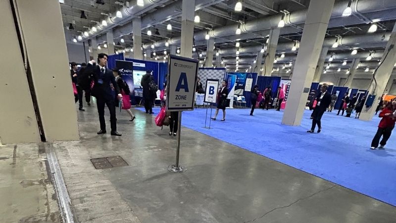 会場内は、1階のホールが面接ブース、2階のホールが企業説明会ブース、3階がフードコートや休憩用ラウンジ、プリンターがある階という形になっています。