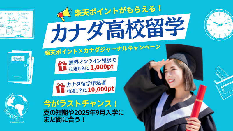 2025年のカナダ高校留学を検討中の方へ朗報です! 留学エージェント「カナダジャーナル」が、楽天ポイントとの特別コラボキャンペーンを2025年5月限定で開催します。
