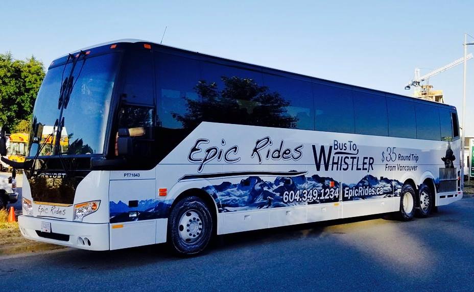 安く・早く・シンプルにウィスラーへ直行できるバスといえばこちら。どのバスを使うか迷ったら、「Epic Rides」をおすめします。「Epic Rides」は、バンクーバーとウィスラー間を運行するローカルバス会社で、片道約1時間45分と短時間でアクセスできるのが魅力です。