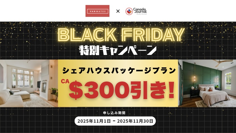 キャンペーン内容:シェアハウスパッケージプランが300カナダドルOFF